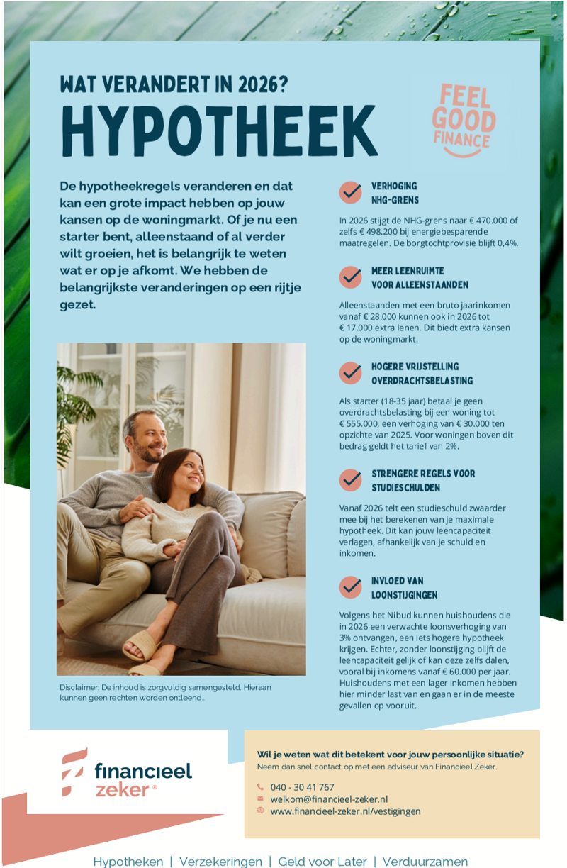 Bij Optimaal Financiële Diensten | Financieel Zeker vergelijken we meer dan 40 aanbieders op prijs en voorwaarden. Zo vinden we samen de aanbieder die het beste bij u past. Dat is Feel Good Finance. meer dan 40 banken en verzekeraars